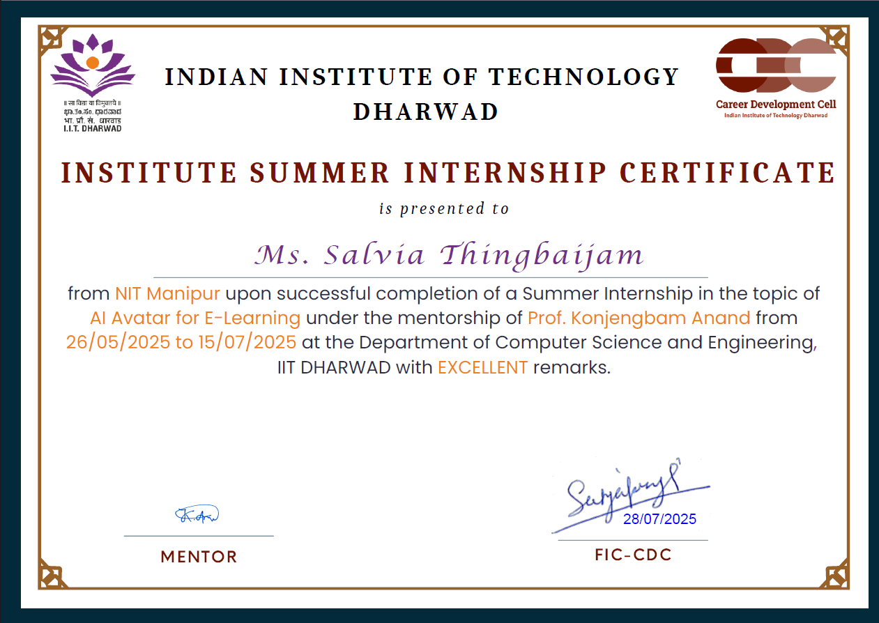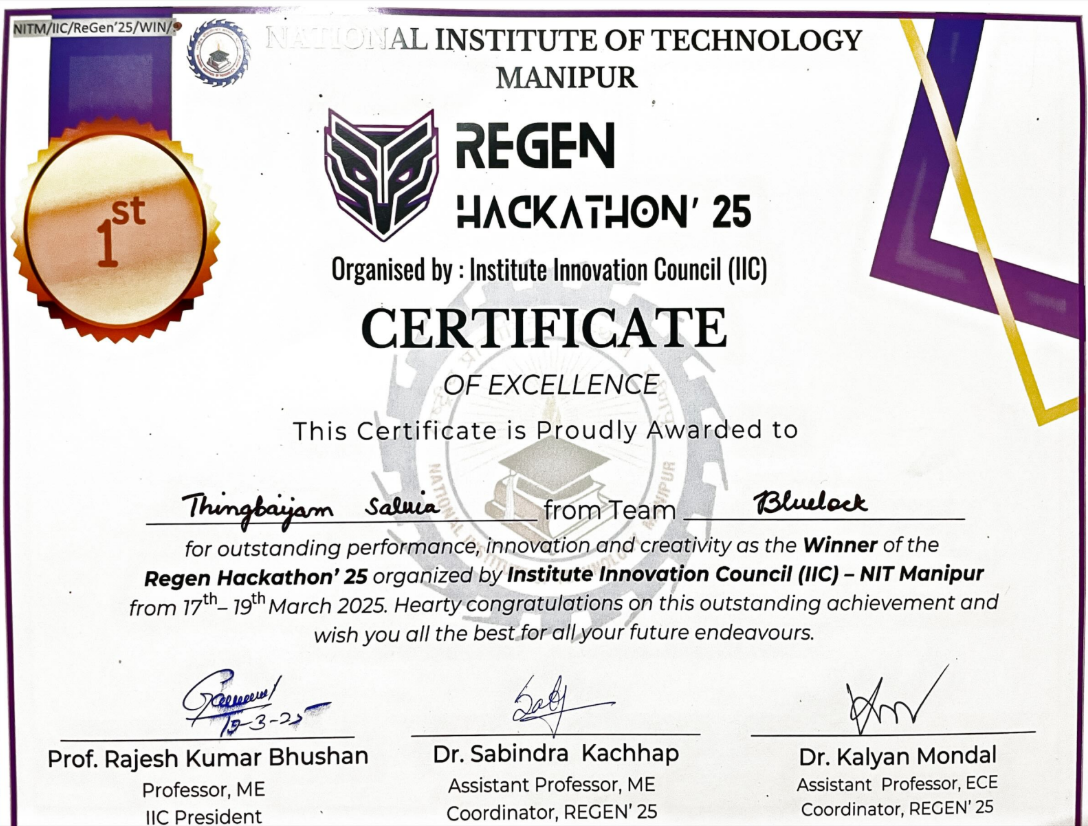 Institute of Technology Manipur mantaining a cgpa of 8.59